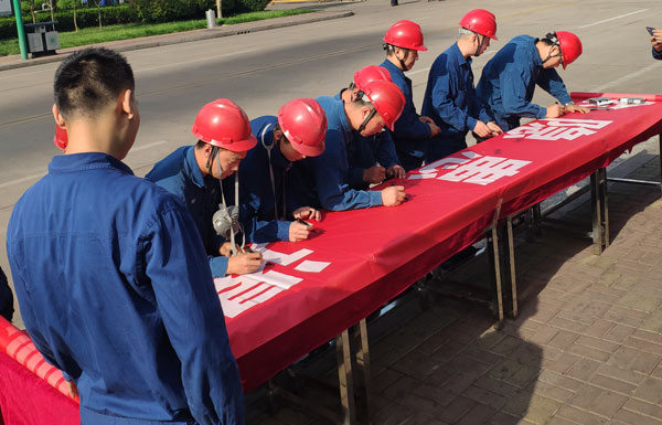 6月初,集团安委会制定并下发了《关于开展2019年“安全生产月”活动的通知》,各单位积极行动,广泛动员。开展了安全签名活动,员工们纷纷许下安全承诺;通过横幅 、专题展板 、电子显示屏等各种载体,进行安全知识宣传 ,提高员工的安全意识。6月中旬,集团举办了2019年基层管理人员安全培训活动,500多名基层管理人员分批次参加培训 。课堂上 ,安全员结合实际 ,做了深入浅出、精彩生动的安全知识讲解 ,参训人员认真记录,仔细领会 。通过培训 ,有力提高了基层管理人员的安全素养,形成了“我要安全、我会安全 、我懂安全、我能安全”的良好安全生产氛围 。