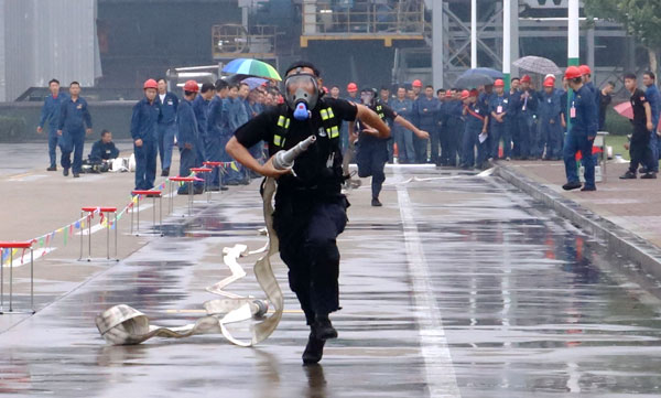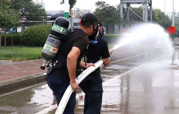 6月中旬,公司在甲醇罐区开展了生产安全事故综合应急演练活动,从启动应急救援预案 ,到完成事故报警 、人员施救、逃生疏散、灭火救援等环节应急处置 ,各小组分工明确,反应迅速,集结有序 ,配合紧密,演练方案科学合理、执行有力,进一步提高了应急响应、应急处置和救援能力,为应对突发事件积累了实战经验 。同时举办消防安全技能比武大赛,包括单人50米操作灭火器灭火 、三人四盘水带连接出水灭火操作、应急器材使用等比赛项目 ,以赛促学,竞出水平,全员提升 。加强了员工专业技能训练 ,提升应急救援能力,确保应急救援队伍在关键时刻能够召之即来  、来之能战、战之能胜 。
