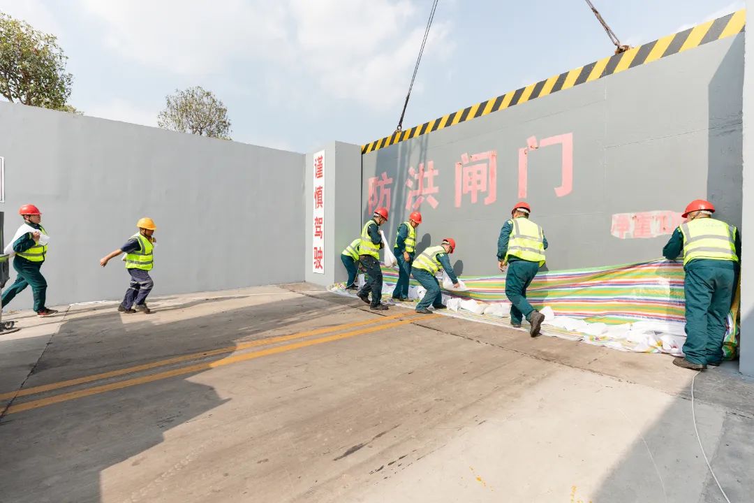 模拟航道水域发生重大汛情,立即组织与抢险无关人员全部疏散 ,设置警戒线,迅速关闭、切断输电、供水系统(应急照明系统除外)和各种明火 ,防止洪水后滋生其他灾害 。应急物资运输车、抢险车紧急出动、重型吊车迅速到位,关闭10吨重防洪门 ,应急队伍迅速到位 、装沙袋、垒砌防洪墙,补填防洪门缺口 。