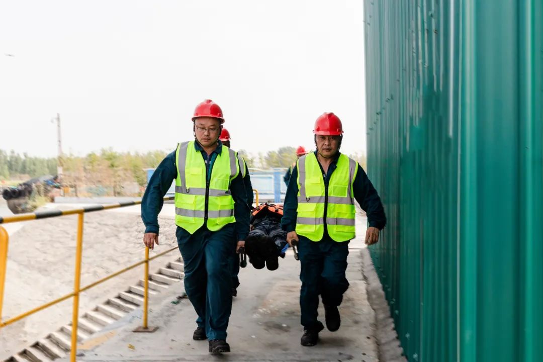 模拟作业货运船舶发生人员落水事故,港口企业接到报警后立即启动应急预案,救援人员 、救援船舶立即到位,并同步通知120急救中心 。救援人员穿戴好救生设备迅速下水救援落水人员,落水人员救援上岸后立即使用担架迅速登上120急救车,由专业医护人员接手做进一步救治 。